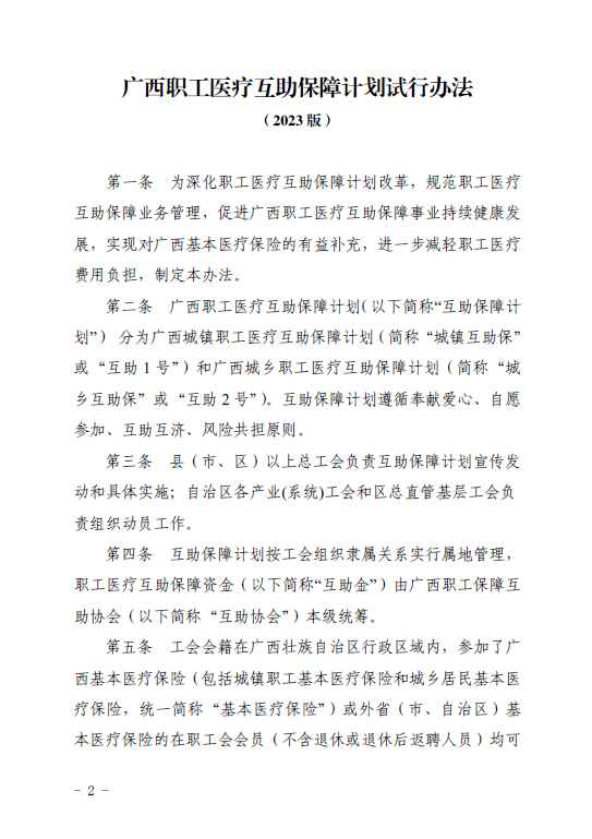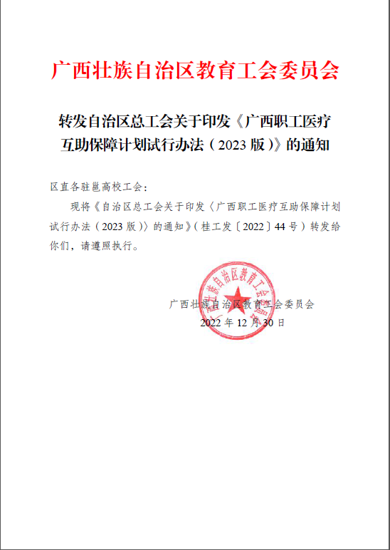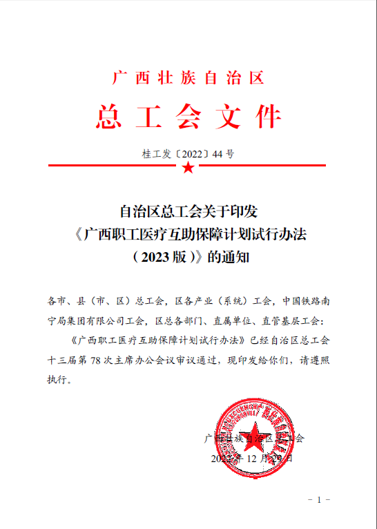 自治区总工会关于印发《广西职工医疗互助保障计划试行办法(2023版)》的通知