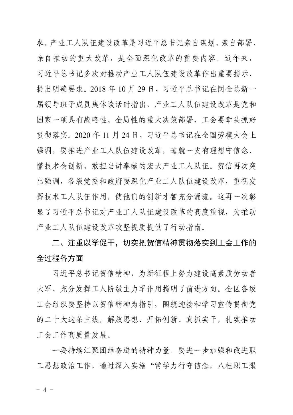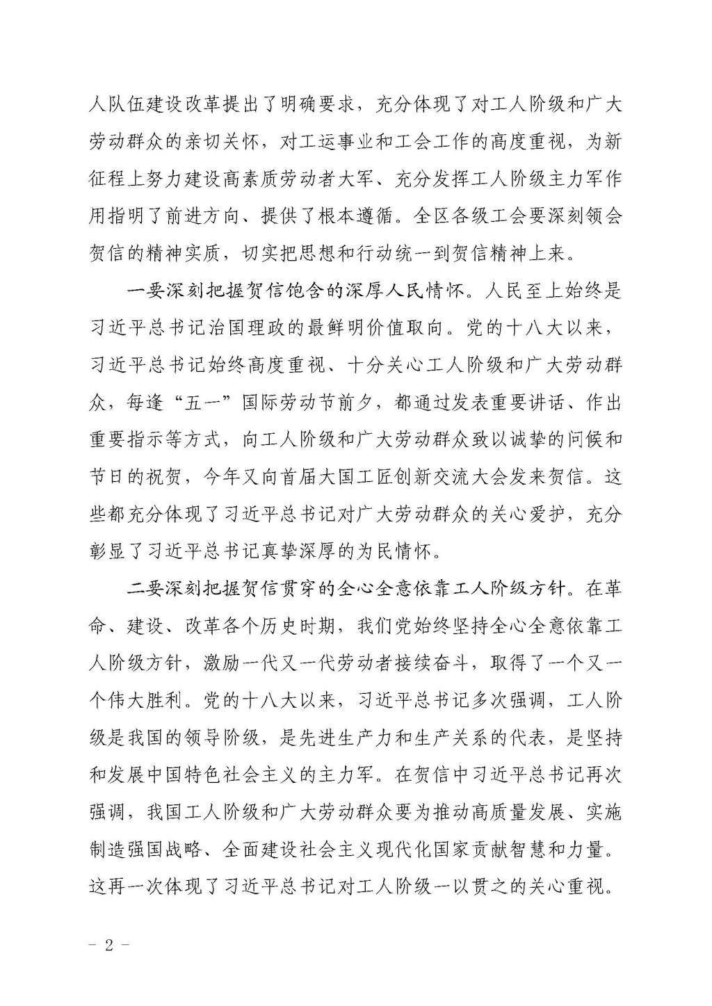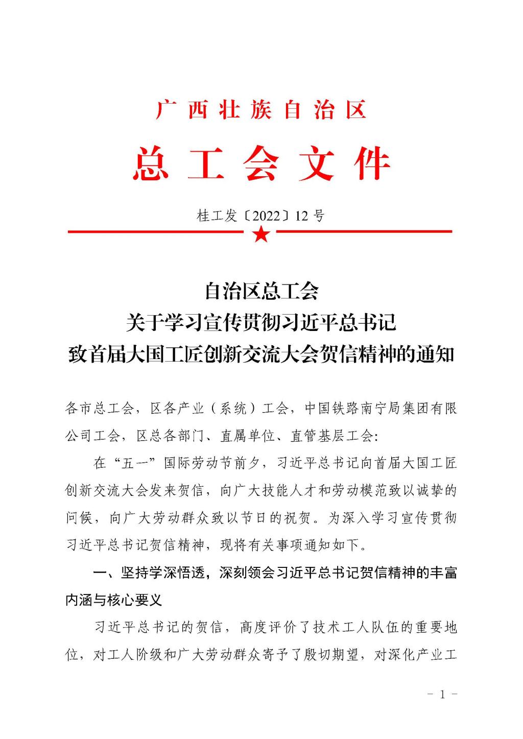 自治区总工会关于学习宣传贯彻习近平总书记致首届大国工匠创新交流大会贺信精神的通知