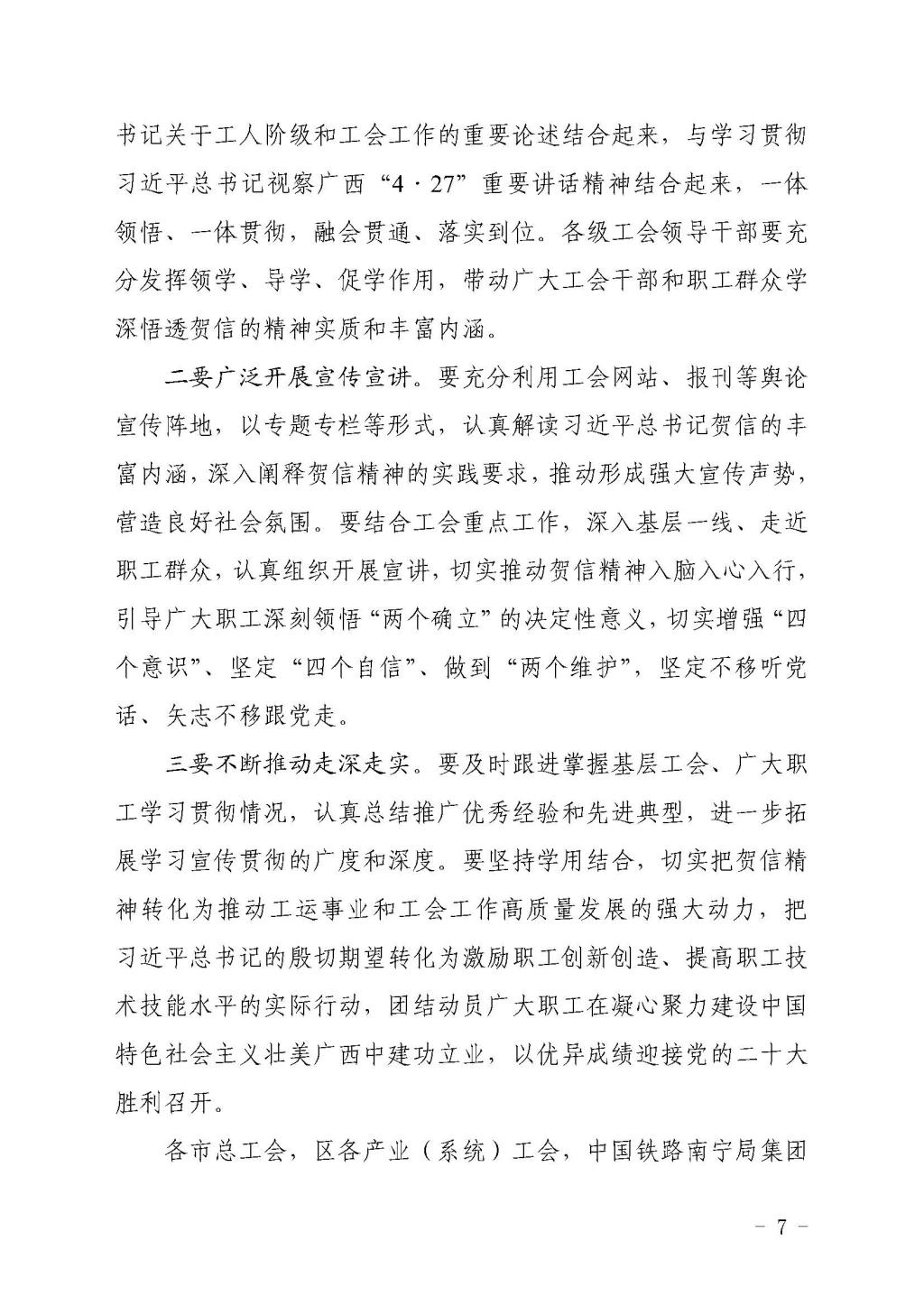 转发自治区总工会办公室关于认真学习宣...