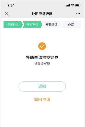 注:当提交补助申请后,职工发现部分信息错误,且审核人员未审核,职工可以在补助审核进度页面,撤回补助申请,修改信息后重新提交补助申请。