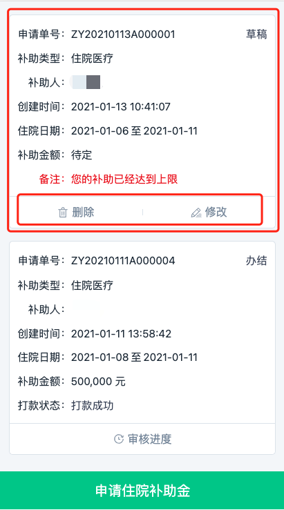 4若未达到起付标准,经办人员驳回完结后,补助单完结,不可再修改