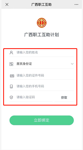 步骤三:进入职工信息绑定页面,输入职工个人信息进行绑定。